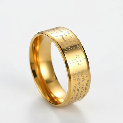 A symbol of devotion and strength. This gold ring engraved with the Lord’s Prayer keeps faith close at hand. Elegant, durable, and deeply meaningful.